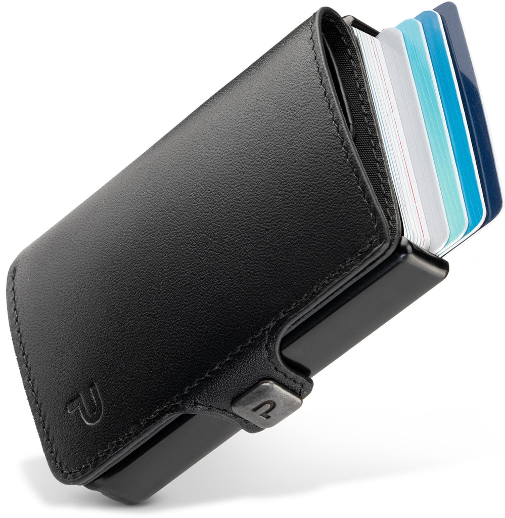 KLIK Minimal SLIM Pelle nera: il miniwallet che ridefinisce l'eleganza. Realizzato in vera pelle di alta qualità, offre un design ultra sottile e senza portamonete, perfetto per chi cerca stile e praticità. Disponibile in due modelli, da 8 o 12 carte. KLIK Minimal Slim è la soluzione ideale per tenere tutto l'essenziale a portata di mano, senza ingombri, è la fusione perfetta tra stile discreto e funzionalità intelligente. Tieni tutto ciò che ti serve a portata di mano.