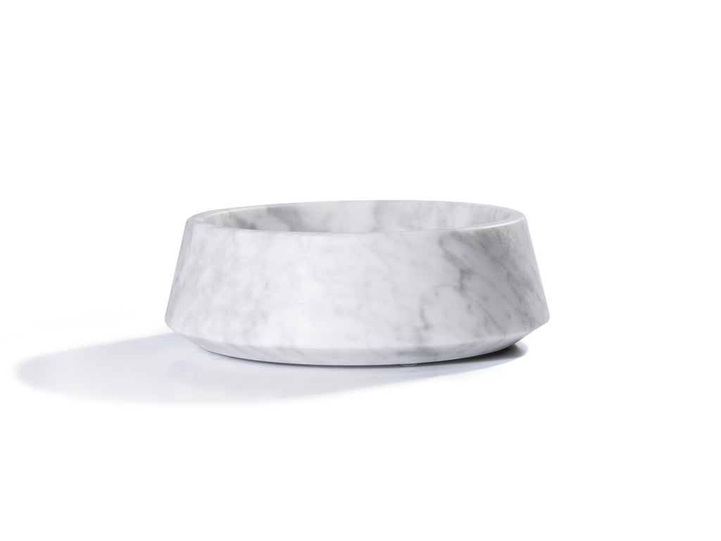 Il marmo è un materiale che, grazie alle sue proprietà isolanti e antibatteriche, permette di mantenere temperature fresche e costanti e di evitare la formazione di cattivi odori, rendendo la ciotola sicura per la salute dell'animale. Il fondo è piatto e ampio, circa 20 cm, studiato affinché l'animale possa cibarsi lentamente, con movimenti liberi e riesca a mantenere una postura corretta del collo e di tutto il corpo.